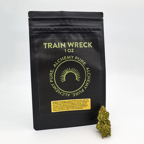 Trainwreck has a pungent and spicy aroma, with loads of lemon and pine. Its flavor is similarly complex, with a blend of earthy and woody notes, along with a subtle sweetness on the exhale.